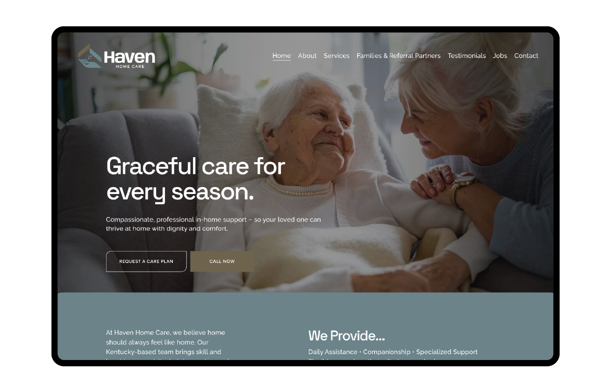 In 2025, I partnered with Keylight Marketing to support the brand and website for Haven Home Care, a Kentucky-based provider of in-home care.